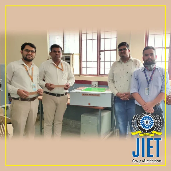 Mechanical Engineering Students at JIET Jodhpur developed a LASER CNC Machine The final year students of Mechanical Engineering at Jodhpur Institute of Engineering and Technology (Mogra, Jodhpur) have not only made JIET proud but also the entire Suryanagari by developing a LASER CNC machine. Team of final year students; Piyush Goyal, Rishi Katta, Rahul Soni, Ritam Mathur and Ritesh Mundra completed their final year project 'Design and Fabrication of Laser CNC Machine' under the supervision of their mentors Mr. Abhishek Dixit (Dy. Head (Academics, ME) ) and Mr. Amit Katiyar (Astt. Prof., ME). Head of Mechanical Engineering Department, Prof. (Dr.) Deepak Mehra stated that this project is special because one do not have to do any kind of coding in it, making this machine very easy to handle. Today, Laser CNC machine is the most useful machine in the industry. With it's help engraving and cutting of complex shapes can be done on any material such as wood, plastic, metal, aluminum, etc. with less time and less effort in industries.